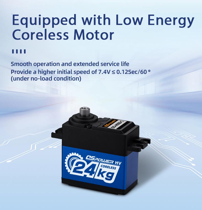 ● High torque and precision: 24kgf.cm continuous torque output, completing difficult tasks through high torque output, climbing from RC truck slopes to high speed drive of heavy duty valves. High precision gear control ensures precise positioning of robotic arms, electronic throttle valves, and flow control valves.
