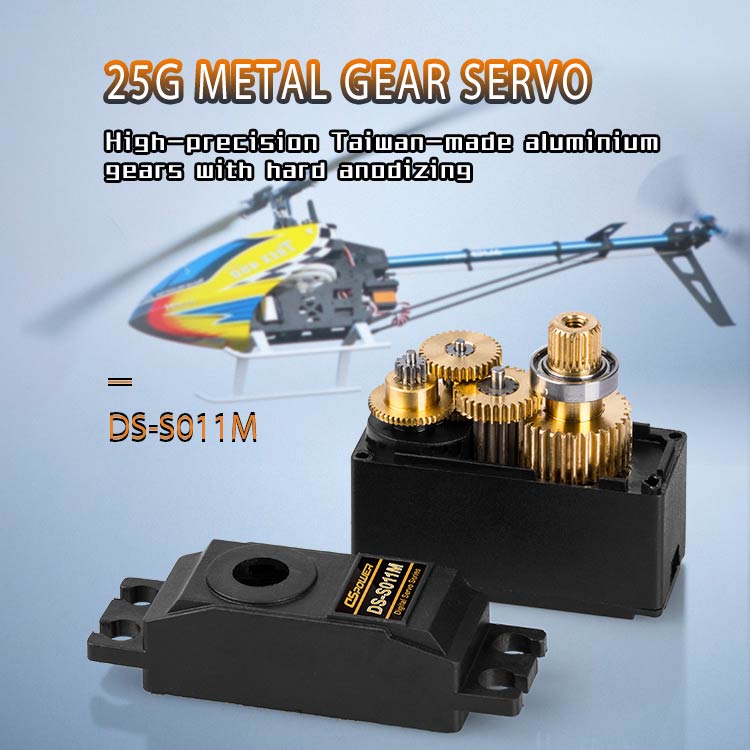 21g DS-S011M Metal Gear Standard Digital Servo , featuring a rugged All Metal Gear Train and Coreless Motor, delivers the raw power and exceptional precision required for high stakes projects. From navigating the rough terrain of a remote controlled race car to the critical control surfaces of an aerial drone, the DS-S011M is a model of durability and reliability.