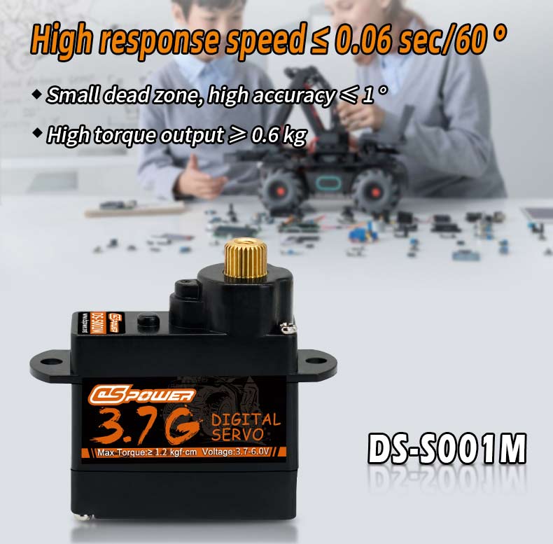 DS-S001M features built in metal gears and multiple protections, effectively minimizing damage from improper operation by students and reducing maintenance and replacement costs. Its standard PWM control signal allows for seamless compatibility with mainstream microcontrollers and development platforms, including Arduino.