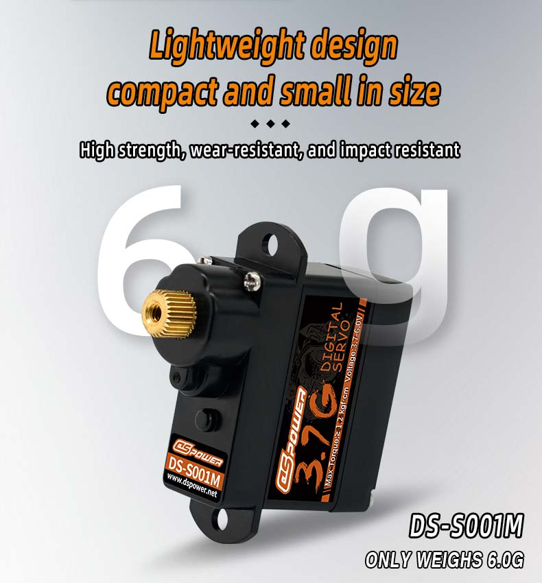 The weight of 3.7 grams makes it an ideal choice for ultra light model aircraft ailerons, elevators and rudders, effectively reducing the overall load, improving flight efficiency and maneuverability, and equipped with metal gears, it can withstand collisions or high wind resistance loads that may be encountered during flight.