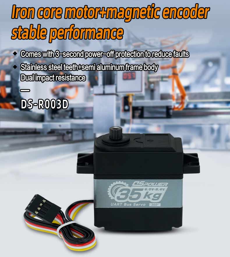 ● Bionic robots:DS-R003D's lightweight and high torque enable bionics and prosthetics to perform smooth, complex movements with high fidelity. The RS 485 bus allows for rapid querying of the position and load of multiple joints simultaneously.