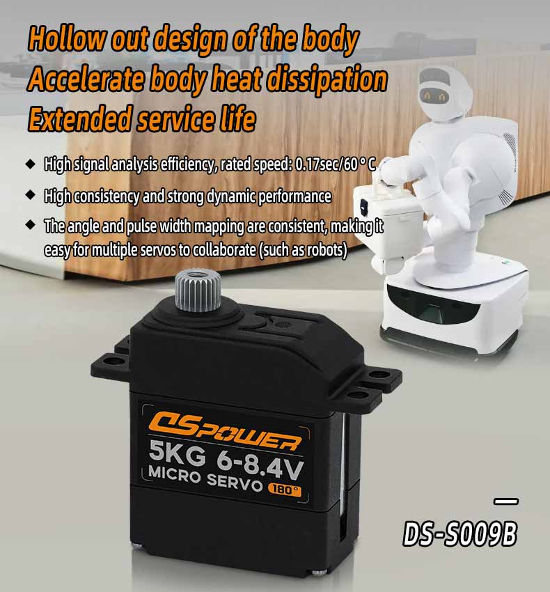 ● High torque output: 5kgf.cm torque, suitable for products that require strong torque, such as robotic dog somersaults and adjustment control of shock absorber valves.