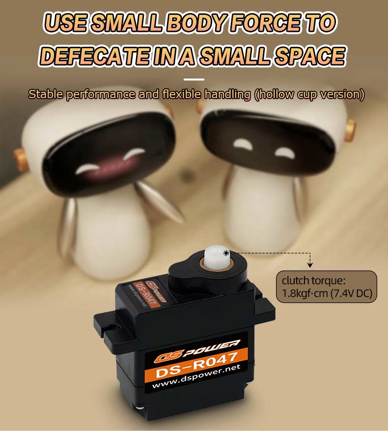 The DS-R047B is used in the legs, arms, or head joints of desktop robots, enabling them to walk, make precise gestures, and interact with the desktop environment. These robots need to be lightweight and precise, while also possessing the durability to withstand impacts on the desktop.