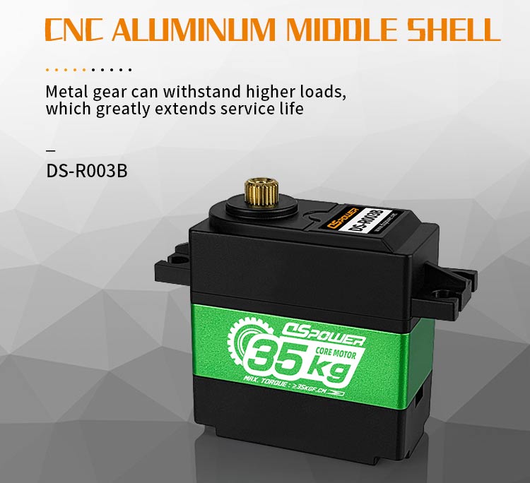 DS-R003B 35kg servo is a powerful servo motor capable of providing up to 35 kilograms of force or turning power. It is suitable for various applications that require exceptional torque and precision control. Here are some scenarios where a 35kg servo is commonly used: