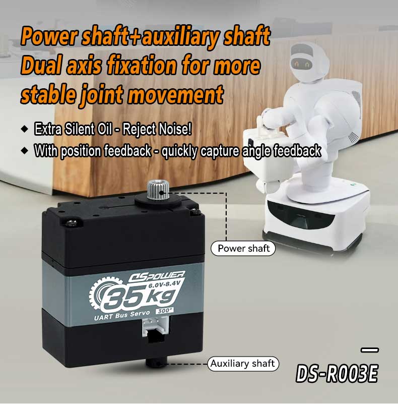 DS-R003E RDS3235 35kg Metal Gear TTL Serial BUS Servo is a high performance digital servo system designed specifically for precision, durability, and power. The servo system adopts a heat dissipating metal shell design, which can provide a torque of 35KG and a controllable angle of 270 °, with excellent linearity. The convenient serial design of its three ports simplifies wiring and makes the integration of complex systems easy.